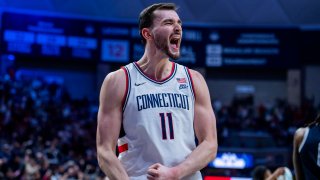 Karaban made his biggest shot of the night, a third triple of the second half, with just under three minutes left, giving UConn a seven-point cushion. It’s approximately the 700th time in his career that he’s made a shot like that in that spot.